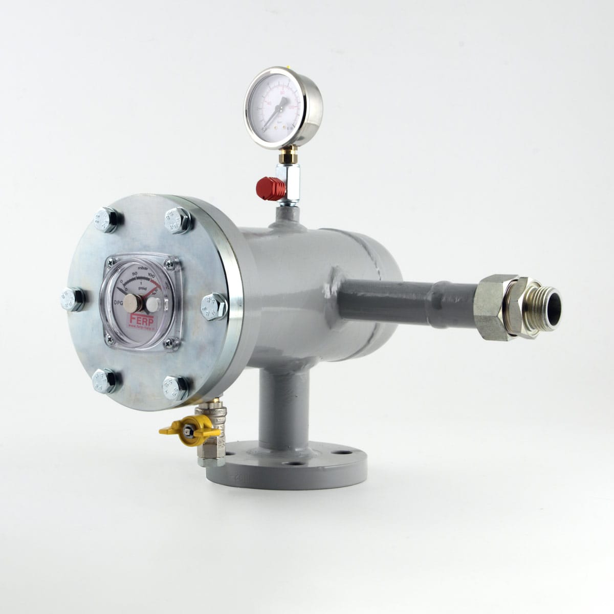 Può essere corredato di rubinetto portamanometro, manometro, indicatore di intasamento e manifold.